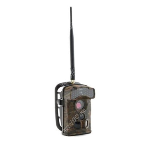 Влагозащищенный корпус камуфлированной окраски позволяет вешать камеру даже в лесу и оставлять там на длительное время, так как в режиме ожидания она может работать до 6 месяцев. Для крепления камеры предусмотрен специальный ремень и дополнительно защитный бокс с более гибкой возможностью крепежа под разным углом. Питание осуществляется от 6 или 12 батареек типа AA. Фото или видеозапись идет на карточку SD (до 32 Гб) и отправляется Вам на телефон в виде MMS или на электронную почту через GPRS. Управление и настройка камеры осуществляется кнопками расположенными на камере.
